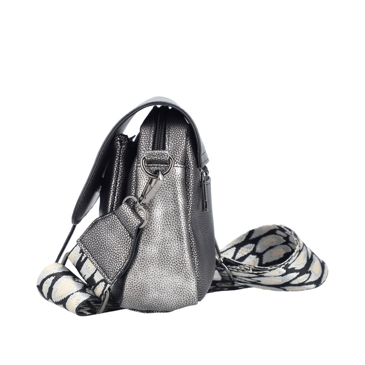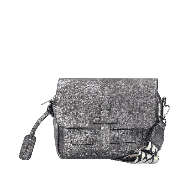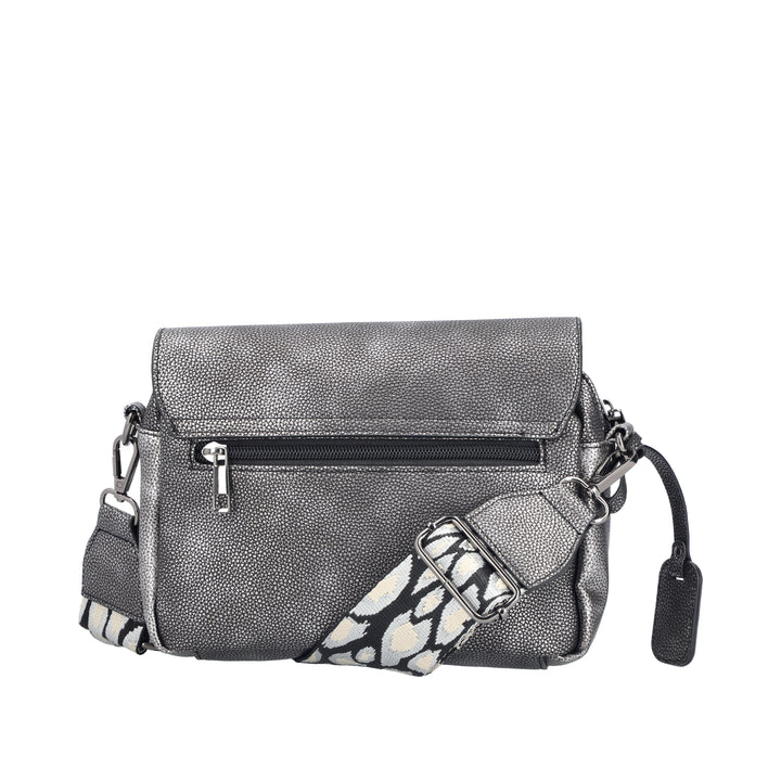Diese RIEKER Handtasche besticht durch ihren stilvollen Look mit interessanten Metallic-Highlights und einer fein strukturierten Oberfläche, die ihr einen modernen Touch verleiht. Das seitliche Etikett mit dem Markenlogo rundet den hochwertigen Eindruck ab. Der obere Teil ist mit einer interessanten Applikation verziert, darunter befindet sich ein praktisches Reißverschlussfach – ideal für kleine Gegenstände, die schnell zur Hand sein müssen. Der zweite Reißverschluss öffnet das Hauptfach, das ausreichend Platz für Ihre alltäglichen Notwendigkeiten bietet und zusätzlich zwei kleinere Fächer für eine perfekte Organisation enthält. Auf der Rückseite befindet sich außerdem ein Reißverschlussfach, in dem Sie Ihre Sachen leicht zugänglich aufbewahren können. Dank des abnehmbaren und verstellbaren Riemens können Sie die Handtasche leicht an Ihre Bedürfnisse anpassen, und ihr Design vervollständigt die Originalität dieses Modells. Diese Handtasche ist für moderne Frauen geschaffen, die beeindruckendes Design mit praktischem Nutzen verbinden möchten. Dank der durchdachten Aufteilung des Stauraums und der stilvollen Details wird sie zu Ihrem liebsten Alltagsaccessoire, das jedes Outfit perfektioniert und gleichzeitig ausreichend Platz für alles bietet, was Sie brauchen.