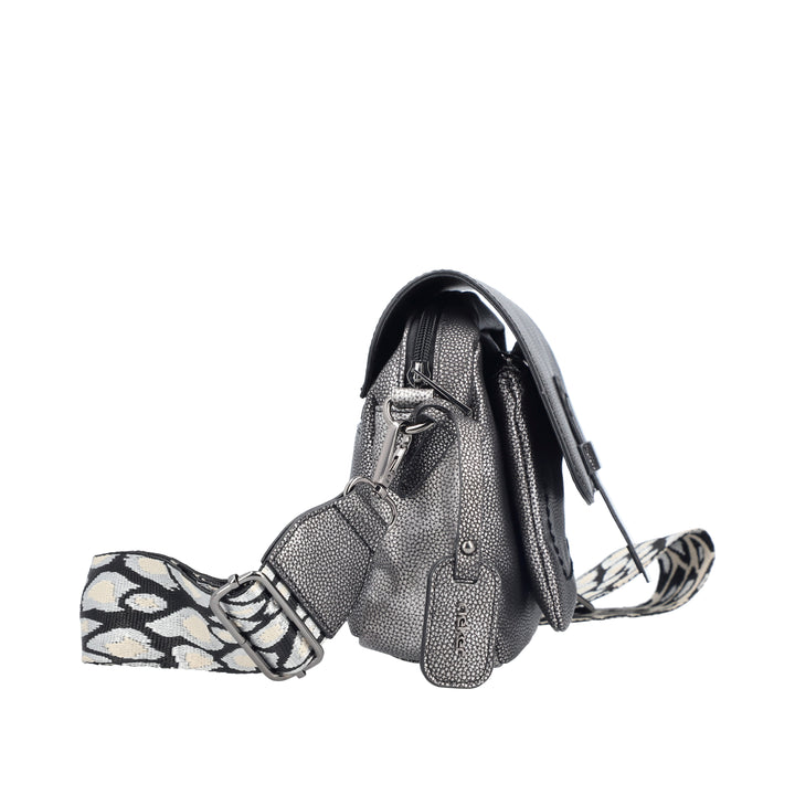 Die Handtasche verfügt über einen längenverstellbaren, abnehmbaren Tragegurt.