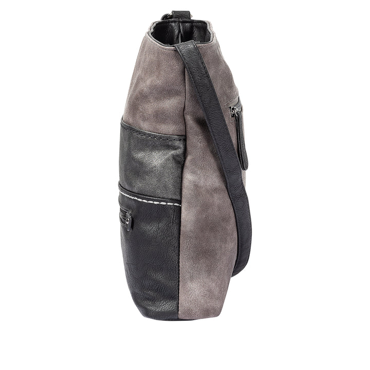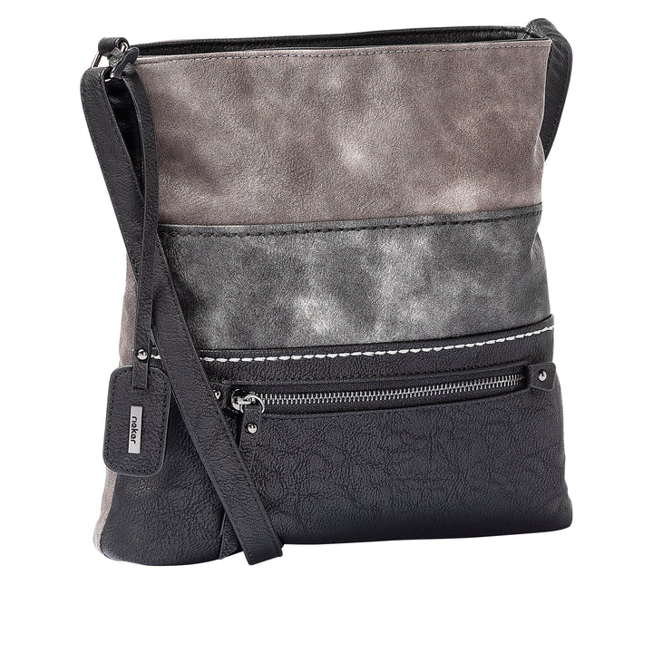 Mindestens genauso so stylisch wie praktisch - überzeuge dich selbst! Diese Rieker Umhängetasche in Asphaltgrau mit Metallic-Finish ist in zwei gleich große Hauptfächer unterteilt, die sich separat per Reißverschluss schließen lassen. In einem dieser Hauptfächer befindet sich ein Reißverschluss-Innenfach, im anderen zwei kleine verschlusslose Fächer. Das Reißverschlussfach auf der Außenseite vorne sowie ein weiteres auf der Rückseite bieten zusätzlichen Platz für wichtige Utensilien.