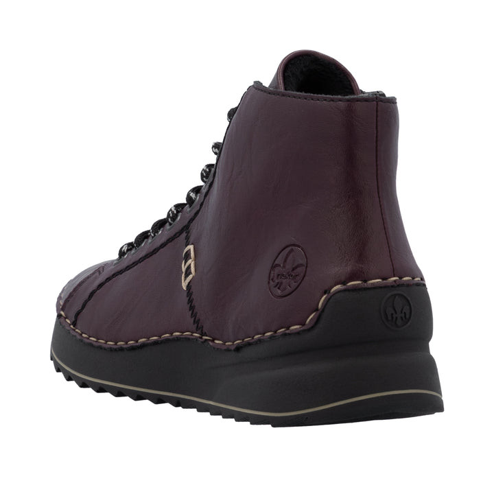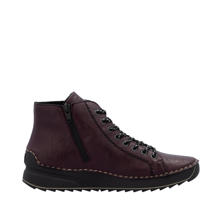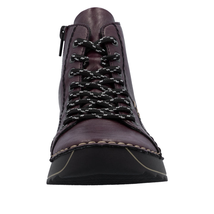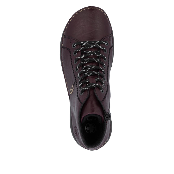 Die folgen dir auf Schritt und Tritt! Diese dunkelroten Rieker Schnürstiefel für Damen sind ein komfortabler Begleiter. Durch die Anflechter-Machart ist der Schuh robust und die Sohle besonders biegsam. Die Schnürung wird durch einen Reißverschluss ergänzt und garantiert somit idealen Halt und eine perfekte Passform. Die schockabsorbierende und leichte Sohle bietet anhaltendes Wohlgefühl ‒ auch an langen Tagen. Außerdem ist die Decksohle extra weich. Diese Schuhe sind die perfekte Symbiose aus Stil und Komfort!