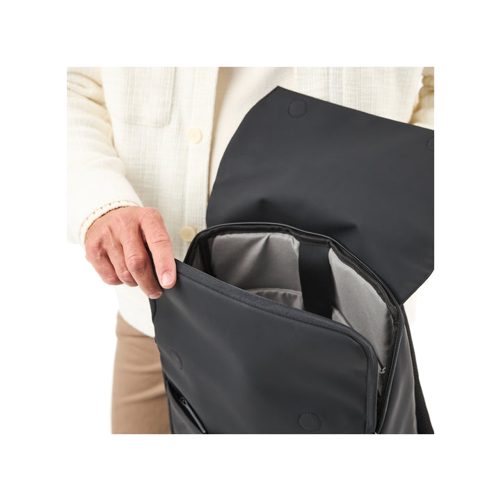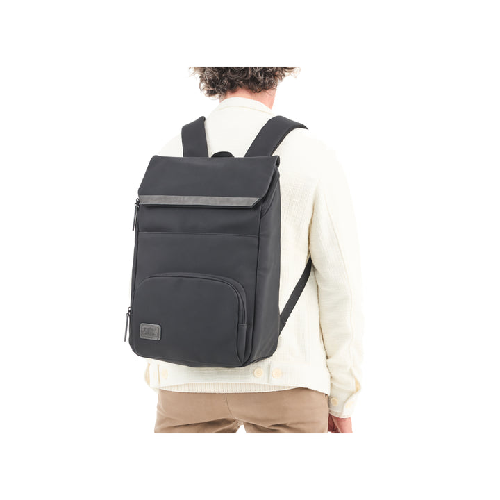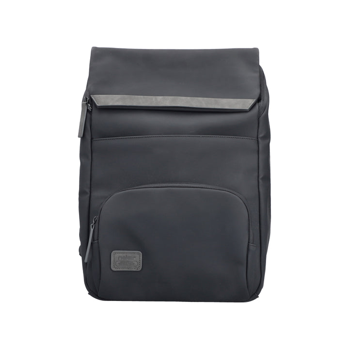 Rieker - Herrenrucksack mit Obermaterial aus Synthetik (100 % Polyurethan) und Textilfutter (100 % Polyester) hat die Maße 45 x 30 x 13 cm. Der Rucksack mit Klappe, die mit zwei Magneten schließt, kann in der Hand am Ohr oder auf dem Rücken an verstellbaren, gepolsterten Riemen getragen werden, die nicht abnehmbar sind. Unter der Klappe befindet sich ein Hauptfach mit Zwei-Wege-Reißverschluss. Auf der Vorderseite befinden sich eine große und eine kleinere Tasche mit Reißverschluss. Die Rückseite des Rucksacks ist gepolstert. Innenausstattung: Auf der gepolsterten Rückseite befindet sich eine Tablet-Tasche - gesichert mit einem Klettverschluss, 1x Reißverschlusstasche. Passend für A4-Format. Obermaterial: Synthetik.